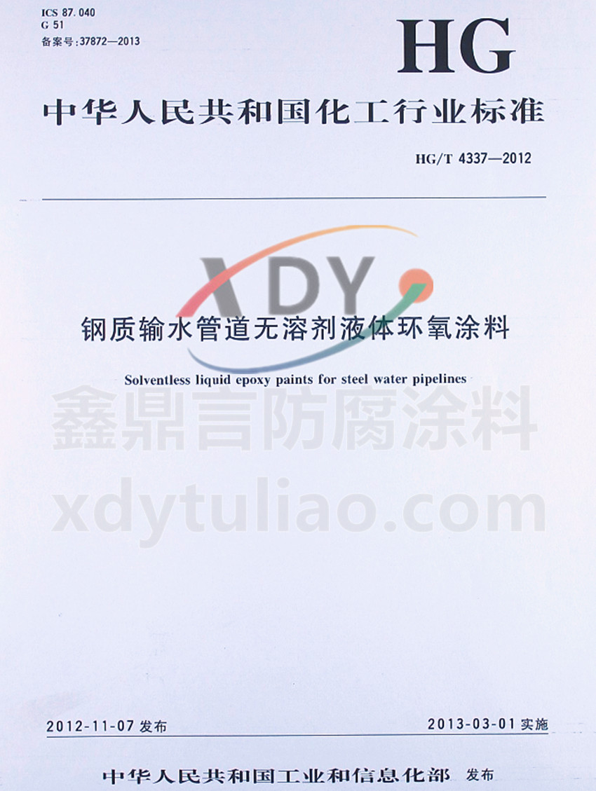 HG/T 4337-2012鋼質(zhì)輸水管道無(wú)溶劑液體環(huán)氧涂料標(biāo)準(zhǔn)