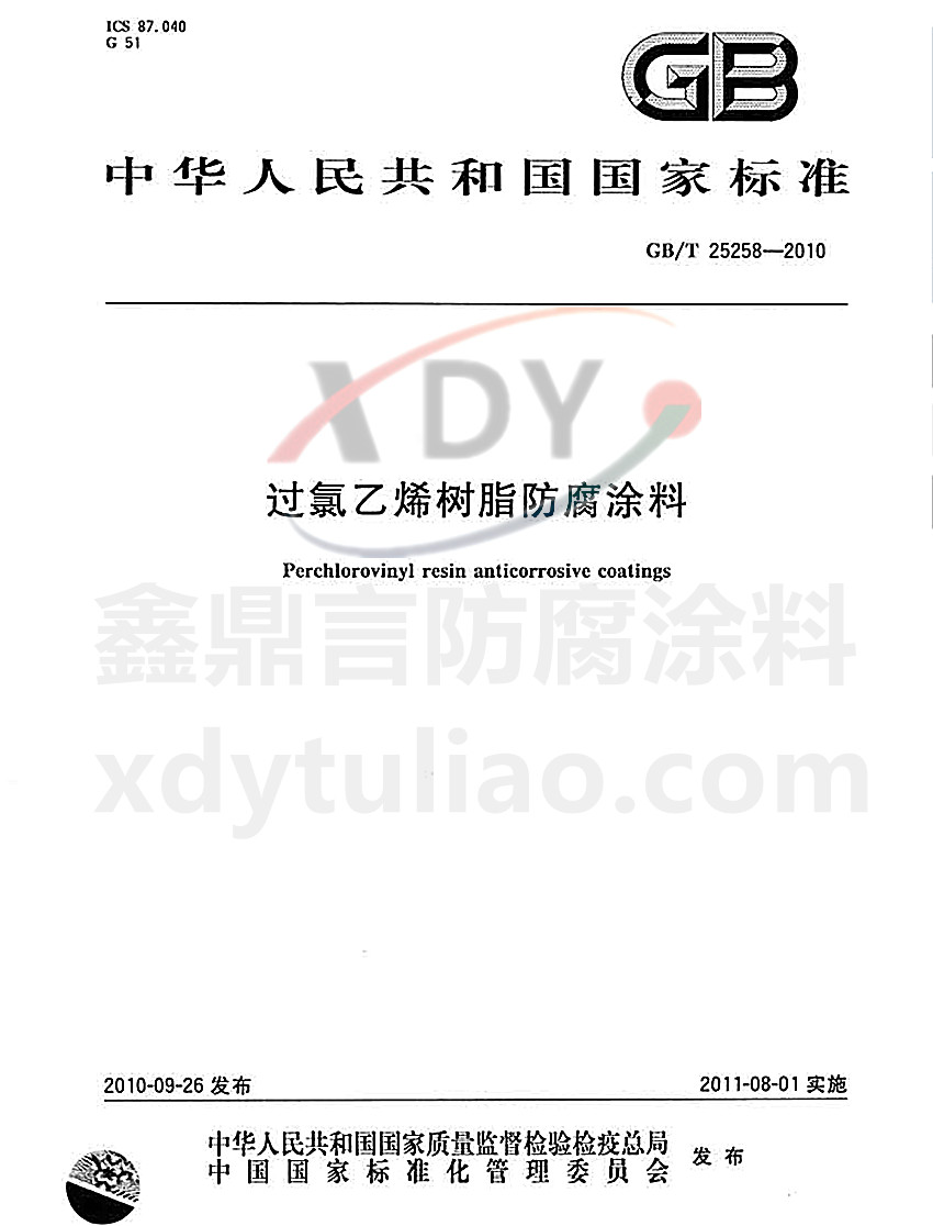 過(guò)氯乙烯樹(shù)脂防腐涂料國(guó)家標(biāo)準(zhǔn)GB/T 25258-2010
